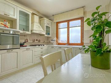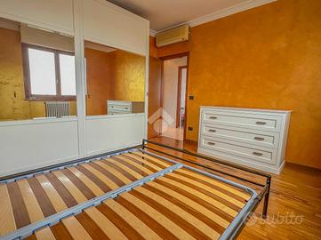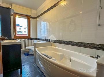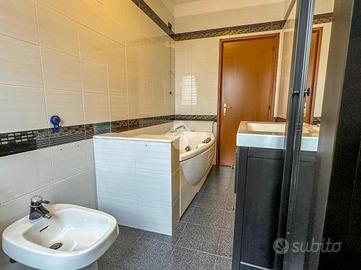 Attraverso un funzionale disimpegno si accede alla zona notte, composta da due camere da letto matrimoniali, due bagni entrambi finestrati, di cui uno con vasca idromassaggio e una terza camera da letto.