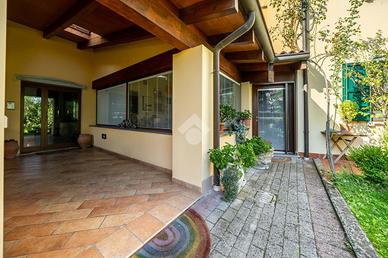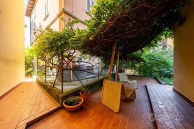 Porporano Appartamento con giardino in corte storica del '600 In zona residenziale tranquilla e poco trafficata proponiamo in vendita appartamento che unisce il fascino della storia al comfort della ristrutturazione. L'abitazione è inserita in una corte del Seicento suddivisa in sole tre unità, elemento che garantisce riservatezza e un'atmosfera esclusiva. Varcando la soglia si viene accolti da un soggiorno ampio e luminoso, impreziosito da un camino che dona carattere all'ambiente e da grandi aperture verso il giardino privato, un prolungamento naturale della zona giorno. La cucina abitabile, collegata al portico, è pensata per essere vissuta pienamente: durante la bella stagione lo spazio esterno diventa infatti una vera estensione della casa, ideale per pranzi e cene all'aperto. La zona notte si sviluppa in modo armonioso: due camere matrimoniali, di cui una con cabina armadio e bagno privato, offrono spazi generosi e riservati, ed una terza camera singola. Un secondo bagno, ampio e finestrato, completa la parte notte. A dare ulteriore respiro all'appartamento, uno studio elegante e luminoso, caratterizzato da vetrate oscurabili e affaccio sul secondo giardino privato: un ambiente che può diventare il luogo ideale per lavorare da casa o per ritagliarsi momenti di quiete. È presente anche una pratica lavanderia. Il parquet, presente in quasi tutti gli ambienti, dona calore ed eleganza. L'appartamento dispone di aria condizionata, termo autonomo, infissi con doppi vetri, zanzariere e impianto d'allarme volumetrico e perimetrale. La proprietà si completa con un box doppio e un posto auto comodo all'ingresso dell'abitazione. Questa casa coniuga il fascino senza tempo della dimora storica con la funzionalità e il comfort di una residenza moderna. Per maggiori informazioni o prenotare un appuntamento contattare Gaia al oppure allo