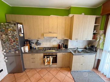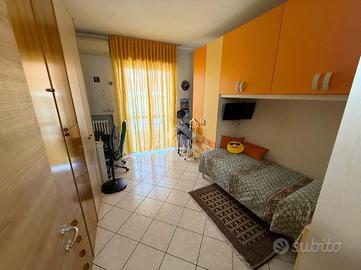 Ingresso in disimpegno attrezzabile, soggiorno con camino (accesso al balcone), cucina abitabile (con accesso al balcone), disimpegno zona notte, camera matrimoniale, servizio finestrato (dotato di doccia), due camere singole e servizio (cieco con ventola d'aspirazione).