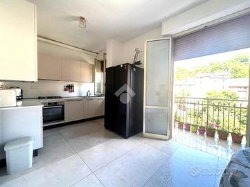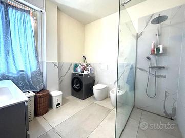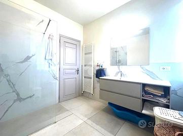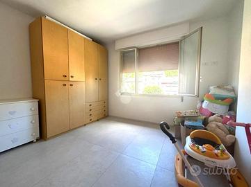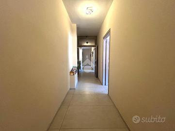 L'ingresso dell'appartamento apre sul lungo corridoio, sul quale affacciano tutte le stanze della casa. La zona giorno è composta dalla grande cucina abitabile dotata di porta finestra che da l'accesso al primo balcone dell'abitazione, e dall' ampia sala. Proseguendo, nel reparto notte, troviamo le tre camere, tutte ampie matrimoniali, una delle quali dotata di portafinestra che da l'accesso al secondo balcone e ed il bagno, dotato di ampio box doccia.