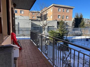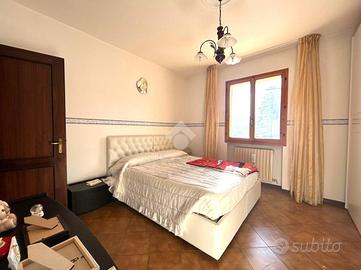L'ingresso dell'appartamento, apre sul corridoio, adibito ad ingresso che separa la zona giorno dalla zona notte. Nella prima troviamo l'ampio soggiorno, dotato di camino e la cucina abitabile, dotata di portafinestra che da l'accesso al primo balcone, che affaccia sul retro dell'abitazione. Proseguendo, tramite il disimpegno che ci conduce nella zona notte troviamo, le due grandi camere matrimoniali, una delle quali dotata di portafinestra con accesso al balcone, la terza camera 3/4, ed infine il bagno, dotato di box doccia. Completa la soluzione il grande garage triplo di c.ca 57mq, raggiungibile tramite la scala esterna che costeggia l'abitazione.