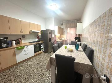 Troviamo la cucina abitabile, il soggiorno grande,un bagno finestrato, le tre camere da letto due matrimoniali e una signola in una delle quali troviamo un balcone .