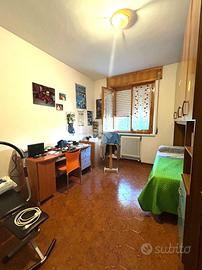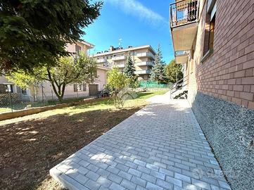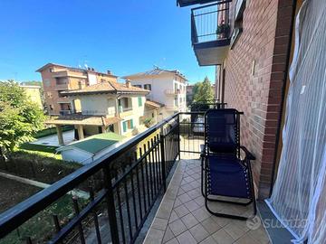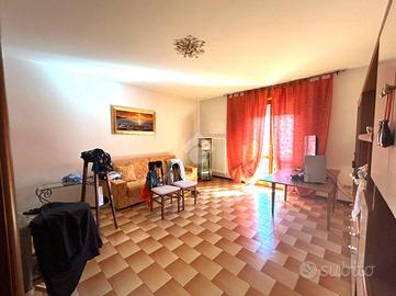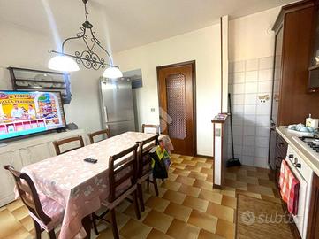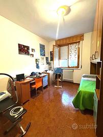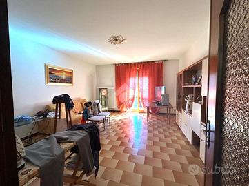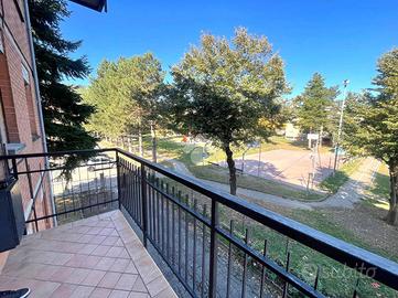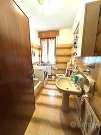 L'immobile affaccia direttamente sul corridoio dove troviamo la sala da pranzo con angolo cottura dotato di portafinestra che conduce al primo balcone con affaccio verso i giardini pubblici, successivamente si entra nel soggiorno, dotato di portafinestra anch'esso, che conduce al secondo balcone che affaccia sul giardino condominiale.