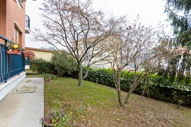 Pecetto Torinese, in una via laterale rispetto alle principali vie del paese, appartamento non arredato sito al secondo piano di un piccolo contesto curato e tranquillo, impreziosito da un grazioso giardino condominiale. L'ingresso living introduce all'accogliente soggiorno, ben disposto, mentre la cucina è collocata in un ambiente separato. Il disimpegno distingue la zona giorno dalla zona notte, nella quale trovano spazio la camera padronale con cabina armadio, la seconda camera matrimoniale ed il bagno finestrato dotato di vasca. Il terrazzo angolare serve sia il soggiorno che la camera padronale, offrendo uno sfogo esterno particolarmente fruibile, mentre la cucina e la seconda camera dispongono ciascuna di un proprio balcone. Completano la proprietà la cantina e il posto auto coperto ad uso esclusivo all'interno dell'autorimessa. Solo referenziati con contratto a tempo indeterminato e/o garanzie reddituali dimostrabili. Disponibile dal 01/06/2026