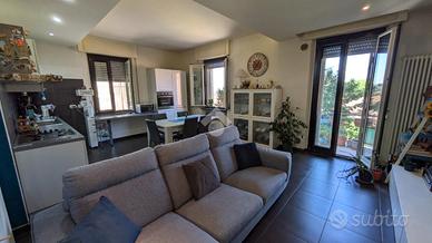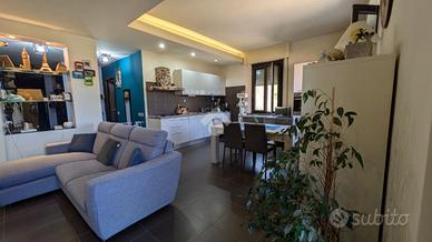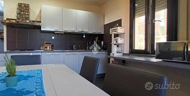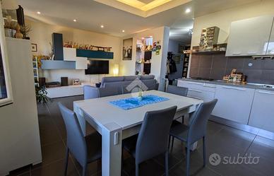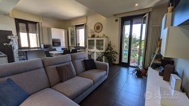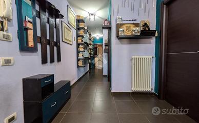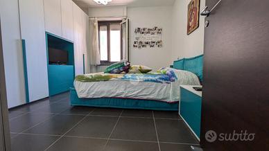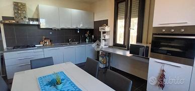 Pavimento in gres porcellanato, porte in legno, infissi in pvc bicolore doppio vetro e apertura a vasistas, impianti rifatti, portone blindato. L'ingresso si apre su un ampio salotto dotato di balcone con cucina a vista. Dal disimpegno si accede alla zona notte composta da tre camere da letto, 2 matrimoniali e una singola. I bagni sono due uno con finestra e l'altro di servizio entrambi con box doccia. La doppia esposizione garantisce luminosità in tutti gli ambienti durante tutto l'arco della giornata. La proprietà include una cantina e un garage al piano strada. Ottima soluzione per chi cerca un'abitazione in città ma lontano dal caos cittadino, al contempo è ideale come investimento data la vicinanza ai servizi e alle facoltà universitarie di Agraria, Veterinaria e Scienze Motorie.