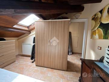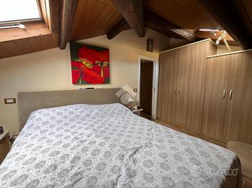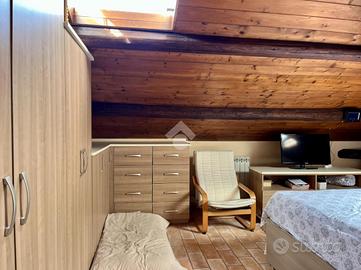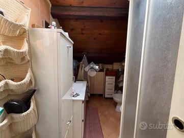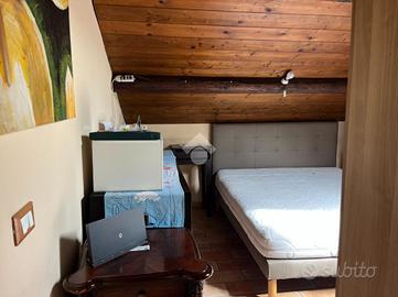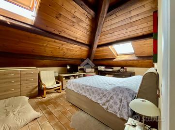 Il secondo piano mansardato, con travi a vista, ospita due camere matrimoniali e un secondo bagno con doccia.