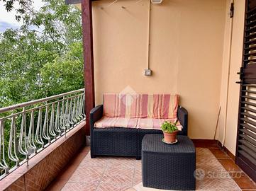 Al primo piano l'abitazione si compone di soggiorno, cucina abitabile con accesso a un terrazzino, bagno finestrato con doccia, una cameretta singola, una camera matrimoniale e balcone.