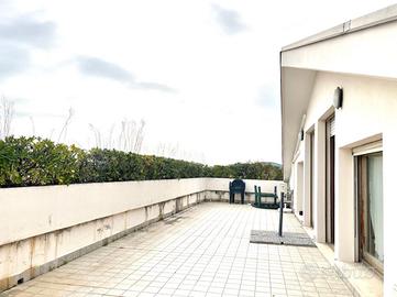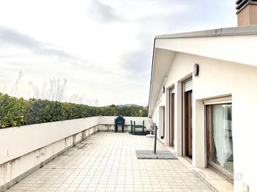 UBICAZIONE: Nel contesto residenziale di Parco della Pace, zona molto tranquilla ai piedi della riserva naturale del Parco San Bartolo ed a pochi passi dal centro e dal mare raggiungibile anche attraverso la rete ciclabile. Il Quartiere è servito da tutti i principali servizi, scuola elementare, medie e asili, nonchè lo storico impianto sportivo Sport Village con due piscine di cui una olimpionica e palestre. CARATTERISTICHE: Condominio molto signorile edificato intorno agli anni 2.000 con rifiniture di pregio e giardini. L'appartamento di circa 130 Mq. posto all'ultimo piano e disposto su due livelli con ampio Terrazzo panoramico di circa 40 Mq.. Il primo livello è caratterizzato da un'ampia zona giorno a vista con una zona salotto che affaccia su un comodo e ampio balcone e da una zona pranzo adiacente alla cucina con Balcone. Dalla zona giorno attraverso un piccolo disimpegno si accede alla zona notte composta da una Camera Matrimoniale ed un bagno con vasca. Dal Soggiorno una pregievole ed ornamentale scala elicoidale di Design permette l'accesso alla zona Mansarda composta da due Camere da letto, Bagno con Doccia, vari ripostigli ed accesso all'ampio e vivibile Terrazzo. Al piano interrato raggiungibile comodamente con ascensore c'è un Garage doppio di circa 38 Mq. STATO e rifiniture: Gli esterni dell'edificio sono stati oggetto di una recente ristrutturazione, sono presenti vialetti e giardini di proprietà del residence. L'appartamento ha la pavimentazione in parquet in listelli di legno massello montati diagonalmente, infissi in legno con isolamento a doppio vetro camera, zanzariere, porte in legno bianche pantografate e scorrevoli, impianto di condizionamento, scala interna in legno.