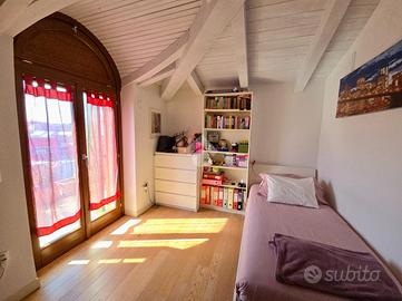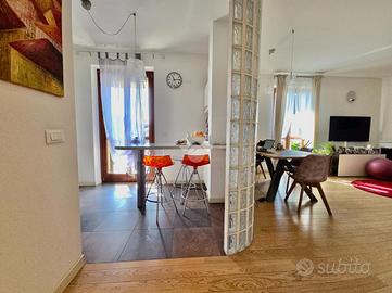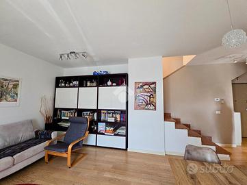 Nel cuore di Pescantina, proponiamo un immobile posto su primo e secondo piano che offre vasti spazi e comfort moderni. Al primo piano abbiamo un ampio soggiorno, la cucina che si apre su uno dei due terrazzi, ideale per momenti di convivialità all'aperto, la camera matrimoniale con balcone privato ed un bagno finestrato con doccia. Al secondo ed ultimo piano si trovano due spaziose camere rifinite con travi a vista e parquet, un grande terrazzo, un bagno ed una loggia. Completano la proprietà una comoda cantina e il garage doppio in larghezza. Costruito nel 2009, l'immobile rappresenta una soluzione abitativa moderna e funzionale che si distingue per le stanze di dimensioni generose e per la luminosità. Situato nel centro del paese, questo appartamento è l'ideale per coloro che desiderano vivere in prossimità dei servizi principali.