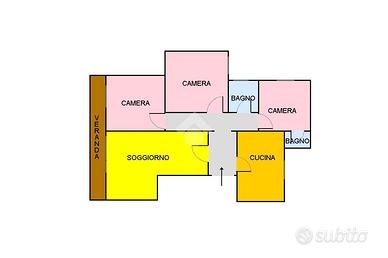 L'ampio ingresso introduce nella zona giorno composta da soggiorno e cucina abitabile, mentre la zona notte ospita tre camere da letto, di cui due matrimoniali, e due bagni, uno dei quali a servizio della camera più piccola.