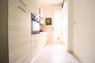 La cucina è dotata di accesso diretto a uno dei balconi, ideale per chi ama avere uno sfogo esterno da vivere quotidianamente.