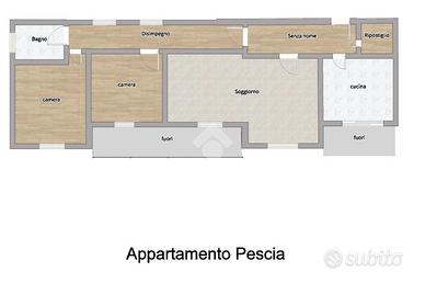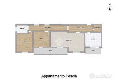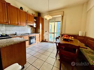Composto da cucina abitabile, soggiorno doppio, camera matrimoniale, camera doppia, bagno finestrato con doccia e due balconi.
