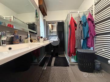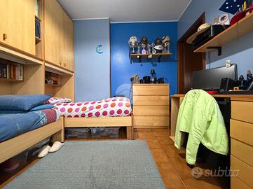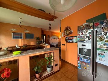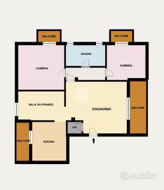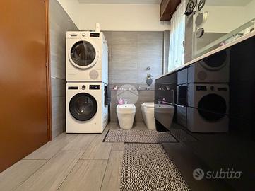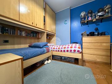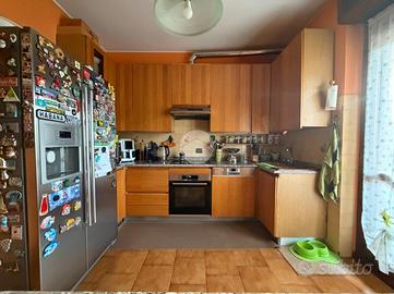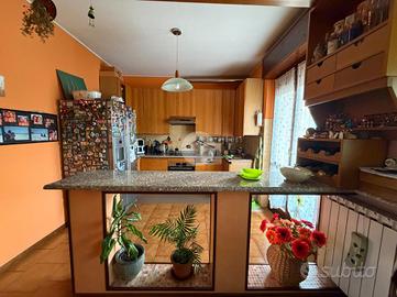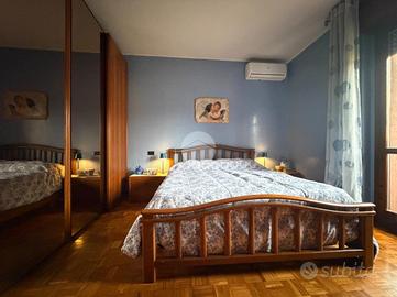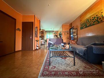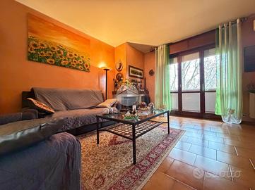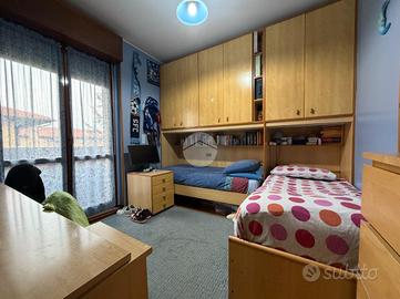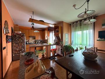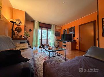 Nel cuore del paese, in una posizione privilegiata e comodissima con tutti i servizi, proponiamo questo luminoso appartamento ideale per chi cerca comfort e praticità. L'immobile è situato al secondo ed ultimo piano, servito da ascensore, all'interno di un elegante contesto a ferro di cavallo con un curato giardino condominiale centrale. Entrando nell'abitazione si è accolti da un'ampia e ariosa zona giorno, progettata in modo razionale per offrire tre ambienti ben distinti: un'accogliente area dedicata ai divani e al relax, una comoda sala da pranzo e una cucina abitabile resa a vista tramite un moderno bancone all'americana. Questa disposizione nasce dalla trasformazione della terza camera, con la possibilità di ripristinare facilmente la configurazione originale da quattro locali. L'ingresso ospita inoltre un pratico ripostiglio, ideale come zona capottiera. La zona notte è composta da due camere da letto, tra cui una matrimoniale con balcone privato, e da un ampio bagno completamente ristrutturato, nato dall'unione dei due servizi originari e caratterizzato dalla presenza di una doppia finestra. L'appartamento gode di tripla esposizione e di quattro balconi: uno nella zona soggiorno, uno nella sala da pranzo con cucina e uno nella camera matrimoniale, garantendo luminosità e aerazione eccellenti. Presente anche l'impianto di aria condizionata per un comfort ideale in ogni stagione. Completano la proprietà la cantina inclusa nel prezzo e la possibilità di acquistare il box a € 18.000,00.