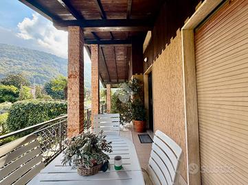 L'appartamento è accessibile tramite una comoda scalinata esterna che conduce a una spaziosa terrazza d'ingresso, perfetta per accogliere ospiti o per godere di momenti di relax all'aperto. Una volta entrati, si viene accolti dalla zona giorno, composta da un ampio e luminoso soggiorno con sala da pranzo. A completare la zona una cucina abitabile separata, arricchita dal camino.
