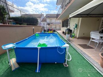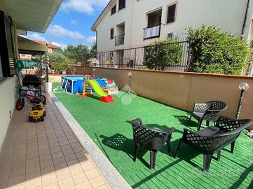 Piedimonte San Germano - via Venezia, in parco di recente costruzione proponiamo splendido appartamento composto da ingresso, ampio salone, cucina abitabile, ripostiglio/lavanderia con accesso diretto alla cantina e a un ampio garage, camera padronale con bagno e cabina armadio, due camere, bagno con vasca, ed un secondo ripostiglio. Dalla zona giorno si accede ad un ampia corte esclusiva con una zona destinata a giardino e una a posti auto. L'immobile è inoltre dotato di zanzariere, impianto d'allarme e altri due posti auto in corte condominiale.