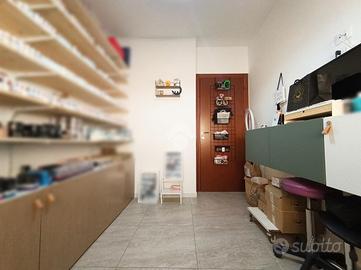 Poi, tramite disimpegno, troviamo la zona notte che è composta da camera da letto matrimoniale, cameretta, bagno finestrato corredato da doccia, uno studio e ripostiglio.
