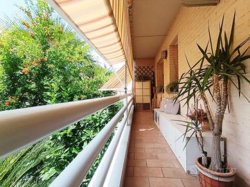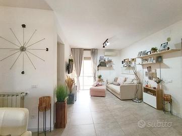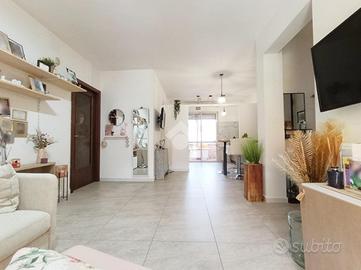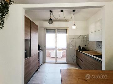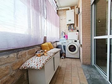 La zona giorno è composta da ingresso, cucina corredata da terrazzo e un ampio soggiorno con accesso a secondo terrazzo.