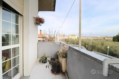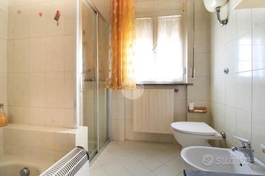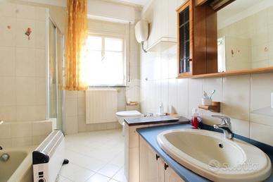 Un pratico disimpegno introduce la zona notte, dove troviamo due camere da letto, entrambe dotate di balcone privato, e un bagno finestrato completo di box doccia e vasca, pensato per garantire comfort quotidiano.