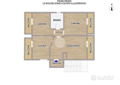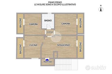 L'ingresso avviene tramite scalinata esterna che conduce all'abitazione, composta da un luminoso soggiorno con camino e accesso al balcone, perfetto per momenti di relax. La cucina abitabile, anch'essa servita da balcone, offre spazi funzionali e ben distribuiti.