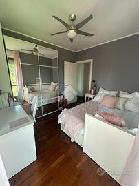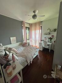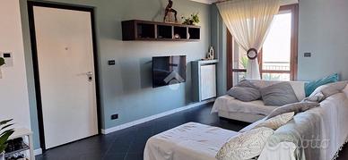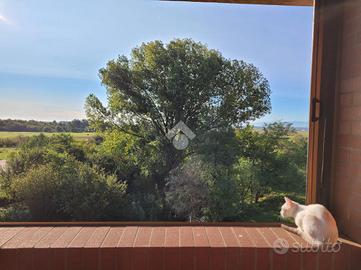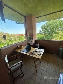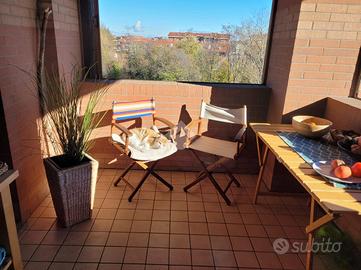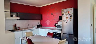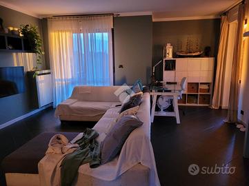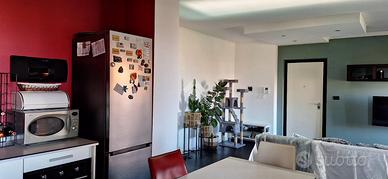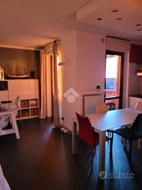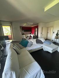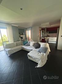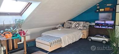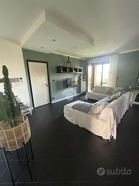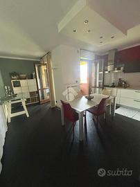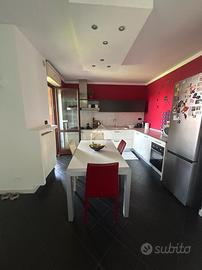 Appartamento di ampie dimensioni in zona residenziale, circondata dal verde e ben collegata a tutti i principali servizi. Ultimo piano di un condominio in paramano dei primi anni duemila, si sviluppa su due piani, con zona giorno e zona notte ben disposte al primo piano e, collegata internamente con comoda scala rifinita in pietra naturale 'Biancone', zona open space mansardata a quello superiore predisposta con tutti gli impianti. L'ingresso affaccia direttamente sulla zona giorno living con salone con pavimento in lavagna con accesso al primo balcone il quale affaccia sul cortile interno del condominio; troviamo poi la cucina, anch'essa con doppia porta-finestra che conduce al meraviglioso terrazzino loggiato il quale affaccia sui campi circostanti. Un piccolo disimpegno porta poi alla zona notte, composta da una prima camera padronale anch'essa con porta-fisestra e balconcino, il bagno con box doccia e terrazzino, e l'ultima camera, con doppia porta-finestra. Ogni ambiente ha un proprio sfogo esterno che rende l'ambiente molto luminoso e areoso. Completano la soluzione la cantina e l'ampio box auto.