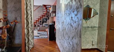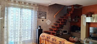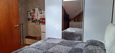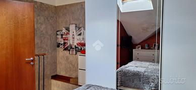 Appartamento all'ultimo piano con mansarda in stabile dei primi anni duemila in paramano. L'ingresso apre su un ampio disimpegno che conduce a tutte le stanze dell'appartamento. Troviamo il bagno, finestrato con vasca e particolare doccia in muratura, la camera da letto con accesso al balcone e un secondo locale, accatastato come cabina armadi ma adattabile alle varie esigenze, come studio o piccola stanza degli ospiti. Alla fine del corridio si apre la zona giorno living, di ampia metratura, con soggiorno e cucina abitabile, con una comoda scala che conduce alla mansarda, dove troviamo la camera padronale con il bagno privato finestrato e con box doccia. Zona giorno e mansarda sono dotate, ciascuna, di climatizzatore. Il balcone affaccia sul Monte San Giorgio, offrendo una meravigliosa vista sui monti circostanti. Completano la soluzione box auto e cantina.