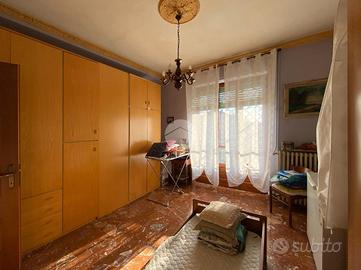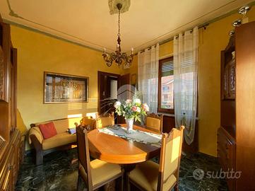 In zona circondata da case indipendenti e appartementi di recente costruzione, appartamento al primo piano di una villa bifamiliare libera su quattro lati. Ampio terreno esclusivo verde e piastrellato. L'esterno è perfetto per chi cerca un posteggio per il camper e una zona attrezzata con gazebo. Tramite scala esterna si accede alla soluzione, così composta: ingresso su corridoio, tinello con cucinino finestrato ed uscita sul primo balcone, soggiorno, due camere da letto e bagno. Da una delle due camere da letto si accede ad un comodo secondo balcone. Impianto di riscaldamento sezionato con presenza di caldaia. Completa la proprietà un box auto. Ideale per famiglie che cercano una soluzione senza spese condominiali e con ampi spazi esterni.