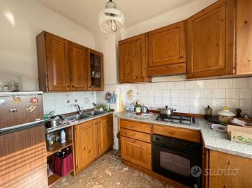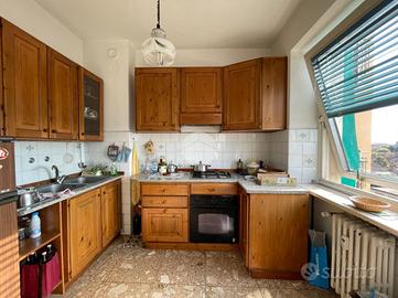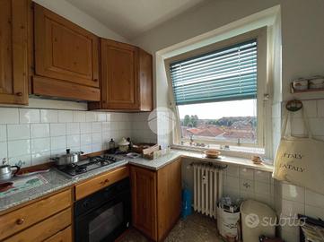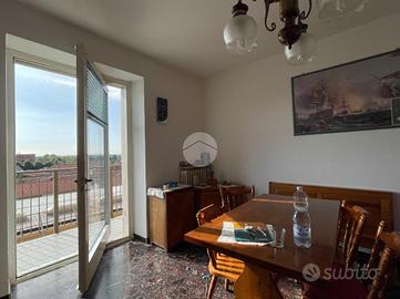 Nel cuore del centro storico di Piossasco, in posizione comoda a tutti i principali servizi, ampio appartamento situato al terzo piano di una palazzina dotata di ascensore. L'immobile si presenta allo stato originale, offrendo così la possibilità di essere ristrutturato e personalizzato in base alle proprie esigenze. Ingresso su ampio corridoio, attorno al quale si diramano i vari ambienti, così distribuiti: una cucina finestrata e un luminoso salotto che affaccia su un primo balcone, due camere da letto matrimoniali, una delle quali con accesso a un secondo balcone, un bagno finestrato con vasca e un pratico ripostiglio. Da entrambi i balconi si può ammirare una splendida vista panoramica che regala un'atmosfera piacevole e rilassante. Completano la proprietà una cantina situata al piano interrato ed un box auto singolo disponibile a parte dal prezzo. Questa soluzione rappresenta la scelta ideale per chi cerca un appartamento ampio e versatile, in una zona strategica per la comodità di avere negozi, scuole e mezzi pubblici a pochi passi da casa.