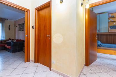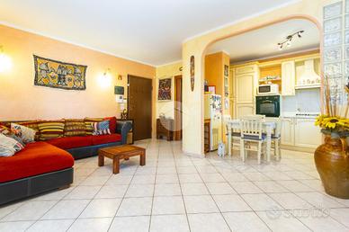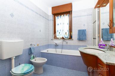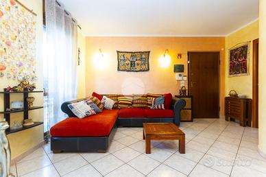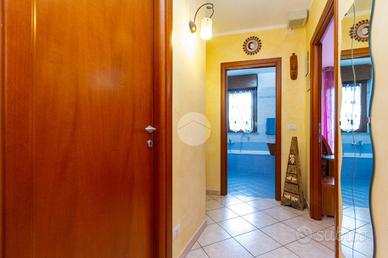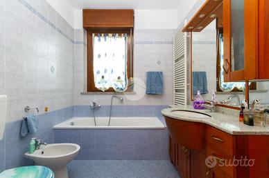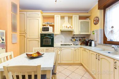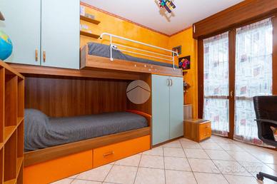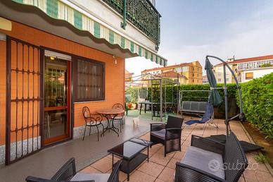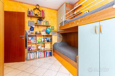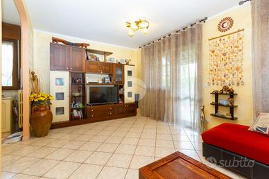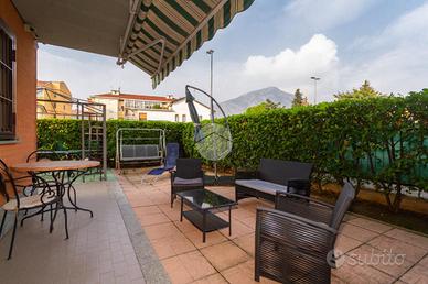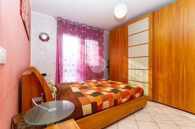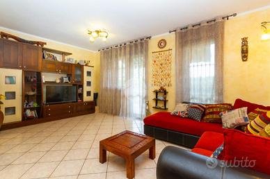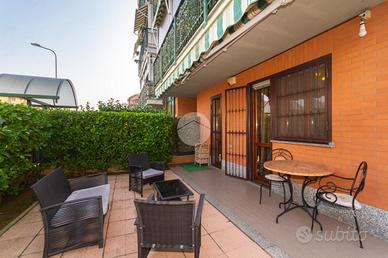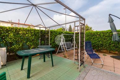In palazzina del 2005, quadrilocale al piano terra con giardino. L'ampio spazio esterno, che circonda l'abitazione su tre lati, è in parte piantumato e in parte piastrellato: ideale per godersi momenti di relax all'aria aperta o per accogliere amici e familiari in un ambiente riservato e piacevole. L'ingresso conduce direttamente nell'ampio soggiorno con cucina abitabile a vista, uno spazio accogliente che rappresenta il cuore della casa. La zona notte è ben separata dalla zona giorno ed è composta da due camere da letto, entrambe con accesso diretto al giardino, e due bagni. Il bagno principale, luminoso grazie alla finestra, è dotato di vasca. Il secondo bagno, completo di tutti i sanitari, dispone già degli attacchi per la lavanderia. Le inferriate sono presenti su tutte le finestre e porte-finestre, garantendo maggiore sicurezza e tranquillità. Completano la proprietà una cantina e un comodo box auto, entrambi inclusi nel prezzo. La posizione è strategica: nelle immediate vicinanze si trovano supermercati, scuole, fermate dei mezzi pubblici e un parco giochi, rendendo questa soluzione ideale per famiglie o per chi desidera vivere in un contesto ben servito, senza rinunciare al verde e alla qualità degli spazi.