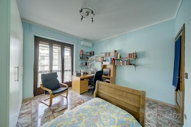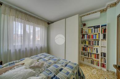In contesto di sole sei unità abitative, alloggio situato al secondo piano, angolare. La palazzina non è provvista di ascensore, pertanto le spese condominiali sono contenute. L'appartamento è internamente composto da un ampio ingresso, cucina abitabile, tre camere da letto e bagno. Attualmente sono state adibite a zona notte due delle stanze accessorie, mentre la terza è arredata come soggiorno. Gli spazi interni sono generosi e tipici delle costruzioni anni '70. Anche i balconi hanno una metratura tale da poter mangiare comodamente fuori. L'immobile viene venduto comprensivo di condizionatore, tende esterne, zanzariere e portoncino d'ingresso blindato. Infissi originali sostituiti con quelli a taglio termico per una maggiore coibentazione (l'ultimo cambiato due anni fa). Presenti due contatori per la contabilizzazione del consumo dell'acqua. Impianto elettrico certificato. A completare la soluzione, cantina e box auto di 17 mq nel cortile interno. Ideale per chi cerca un alloggio con tutti i servizi di prima necessità raggiungibili a piedi (scuole, asilo, alimentari, fermata dei mezzi pubblici, centro storico e farmacia).
