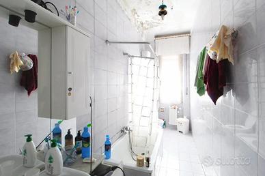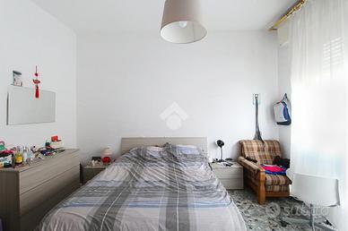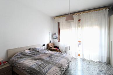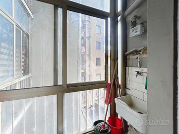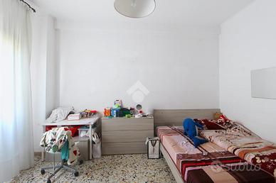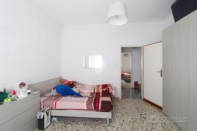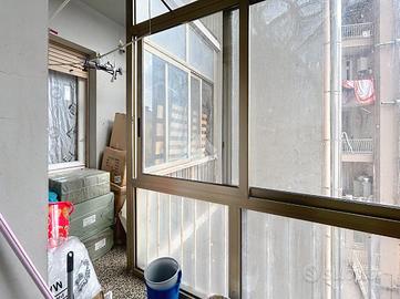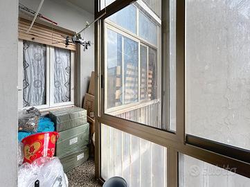 L'ingresso, spazioso e attualmente utilizzato come soggiorno, distribuisce in modo funzionale gli ambienti della casa. La zona giorno è composta da una cucina abitabile con accesso a un comodo balcone verandato, separata da un ampio e luminoso soggiorno con balcone, oggi adibito a terza camera da letto.