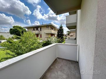 L'ingresso si apre su un'ampia e luminosa zona giorno composta da soggiorno e sala da pranzo in open space, con accesso diretto al primo balcone. La cucina, separata e abitabile, è anch'essa dotata di balcone privato, il secondo dell'abitazione.