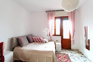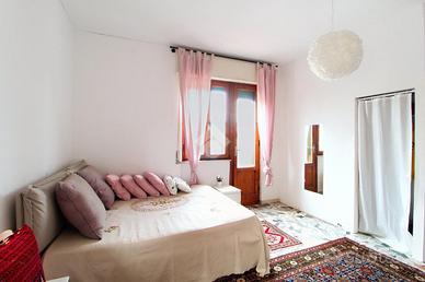 L'ingresso, accessibile da scala esterna privata, si apre su una luminosa zona giorno, composta dalla cucina che rimane separata dall'ampio soggiorno di 23 mq con accesso al primo balcone vivibile. Attualmente il soggiorno è adibito a camera da letto, offrendo massima versatilità negli spazi.