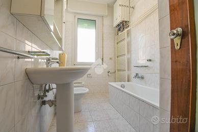 L'appartamento si trova in una palazzina di sette unità abitative e la sua composizione è la seguente: ingresso, sala da pranzo con angolo cottura sul retro, ampio e luminoso soggiorno con accesso diretto al balcone con vista sull'abbazia storica, disimpegno, bagno con vasca e doccia e tre camere da letto.
