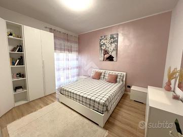 La zona notte comprende due camere da letto: la prima con un balcone privato e la seconda con accesso a un balcone condiviso con il bagno principale, che risulta comodo e ben rifinito. Completano la proprietà una comoda cantina e un pratico box auto.