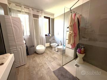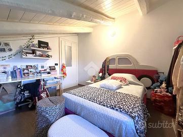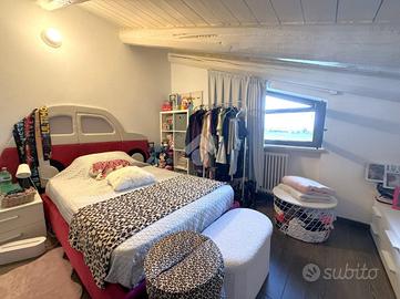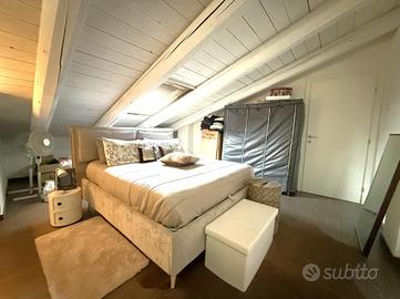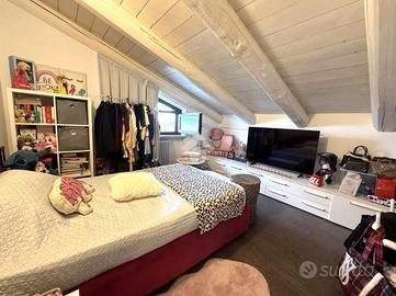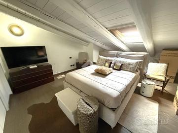 Salendo al piano mansardato, lo spazio è stato suddiviso in quattro locali: due camere da letto, una cabina armadio adiacente alla camera matrimoniale e un bagno con doccia, a garanzia di privacy e comfort per tutta la famiglia.