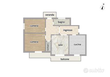 SIECI In posizione interna molto tranquilla e con affacci nel verde, proponiamo appartamento di 4 vani molto luminoso e panoramico, posto all'ultimo piano di un condominio di medie dimensioni costruito negli anni '70 e dotato di ascensore. L'immobile ha una distribuzione degli spazi interni ideale, grazie all'ottima divisione della zona giorno dalla zona notte, facilitata da un comodo ingresso/disimpegno. La zona giorno è composto da un ampio ingresso che da accesso alla cucina abitabile e alla sala, entrambe con affaccio diretto sul balcone. Attraverso una porta che conduce ad un disimpengo, raggiungiamo la zona notte composto da 2 camere matrimoniali, un bagno finestrato con doccia, un ripostiglio e un comodo terrazzino verandato. L'immobile è in buone condizioni generali, ma necessita di alcuni lavori di rimodernamento. Dotato di riscaldamento autonomo, aria condizionata in sala e nella camera matrimoniale e di un posto auto di proprietà ubicato all'interno del piazzale condominiale.
