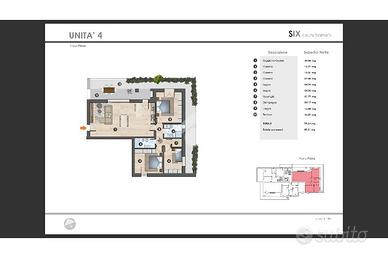 Dall'ingresso si accede direttamente alla zona living di 50 mq con cucina a vista e importante vetrata che da accesso al terrazzo abitabile di 50mq, ideale per mangiare fuori la sera insieme ad amici e pareti. Passando alla zona notte troviamo due camere matrimoniali, camera singola, doppi servizi entrambi con doccia e ripostiglio.