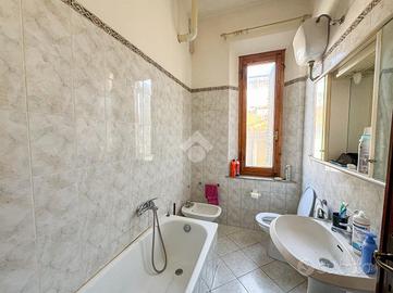 Rifinisce la soluzione il bagno dotato di vasca e finestra e un comodo ripostiglio.
