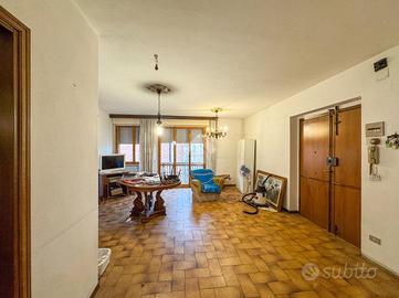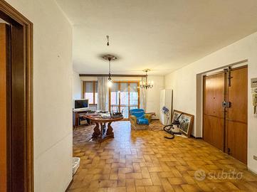 L'ingresso si apre su una ampia sala con vista sul Parco condominiale, ambiente accogliente e ben illuminato.