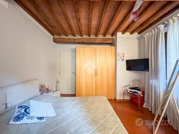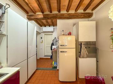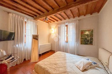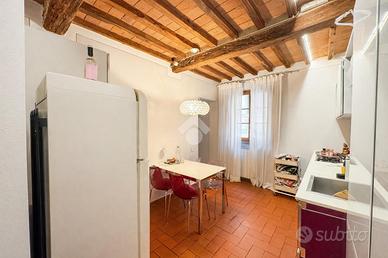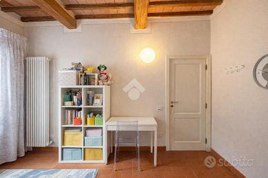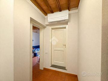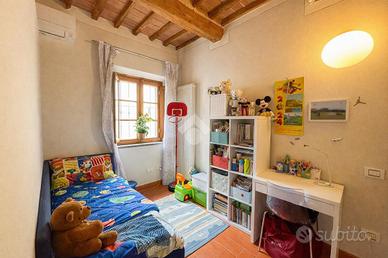 PONTEDERA - CENTRO STORICO Nel cuore del centro storico di Pontedera, all'interno di un affascinante palazzo d'epoca ricavato da una suggestiva ex torre, proponiamo in vendita un elegante appartamento di circa 100 mq posto al primo piano. L'immobile si apre su un comodo disimpegno d'ingresso che distribuisce in modo funzionale gli ambienti, separando nettamente la cucina abitabile dal luminoso soggiorno, garantendo così una piacevole vivibilità degli spazi. La zona notte è composta da due ampie camere matrimoniali; una di esse è stata attualmente suddivisa in due camerette semi indipendenti, soluzione ideale per famiglie o per chi necessita di uno spazio aggiuntivo per studio o ospiti. La cucina, spaziosa e ben organizzata, è dotata di pratico ripostiglio annesso, perfetto come dispensa o locale di servizio. Il bagno, finestrato, è completo di box doccia. L'appartamento si presenta in ottime condizioni grazie a recenti interventi di ammodernamento: infissi in doppio vetro per un miglior isolamento termico e acustico, caldaia nuova e climatizzatori di ultima generazione, che assicurano comfort in ogni stagione. Completano la proprietà una comoda cantina condominiale al piano terra e il valore aggiunto di un edificio con tetto e facciata recentemente ristrutturati.