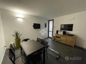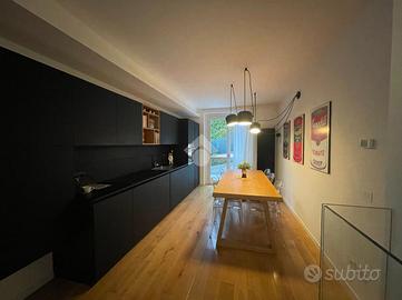 L'immobile, ottimamente rifinito dispone di: luminosa zona openspace con doppia esposizione e accesso da una parte al giardino, e dall'altra all'area esterna piastrellata attrezzabile con divanetti, tavolo da pranzo o jacuzzi.
