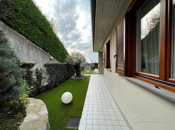 In zona esclusiva del paese, proponiamo in vendita elegante e spazioso quadrilocale posto a piano terra, con giardino esclusivo, completamente arredato.