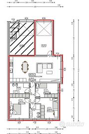 L'abitazione si compone di ampio e luminoso soggiorno con angolo cottura, disimpegno, 3 camere da letto (di cui una matrimoniale, una doppia ed una singola) e 2 bagni. Il progetto può subire variazioni interne secondo le esigenze del cliente.