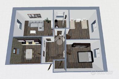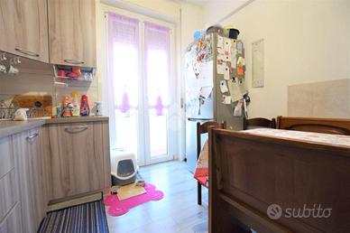L'immobile è sito ad un piano basso composto da una zona giorno formata da una cucina abitabile e da un soggiorno, entrambe molto luminose grazie alle due portafinestre che danno accesso al primo balcone.