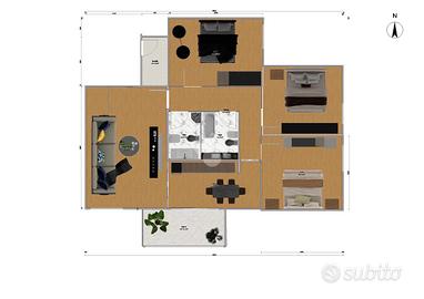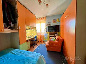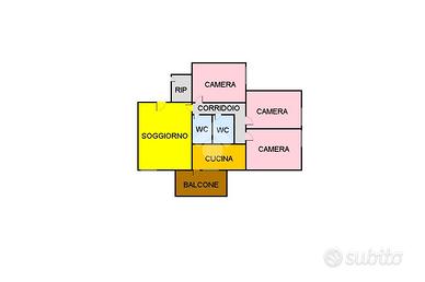 dalla porta d'ingresso accediamo direttamente nella zona soggiorno con angolo cottura con uscita ad un balcone. Alla sinistra dell'ingresso un corridoio ci conduce alla zona notte composta da camera da letto, due camerette, due bagni ed un comodo vano ripostiglio.