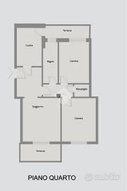 L'ampio ingresso anticipa la zona giorno, nella quale sono stati concepiti sia il soggiorno doppio che la cucina abitabile. Entrambi gli ambienti sono corredati da terrazze di generose metrature.