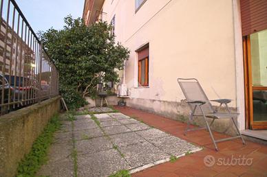 NOSTRA ESCLUSIVA In una via secondaria e parallela di Via Fiorentina, defilata dal caos cittadino, proponiamo, in vendita un appartamento di 4 vani al piano terra con doppio resede pavimentato. Ad accoglierci troviamo il luminoso soggiorno dal quale possiamo accedere al primo resede privato anteriore. Proseguendo, dal disimpegno troviamo la cucina con accesso al secondo resede tergale perfetto per organizzare pranzi e cene con amici e parenti. Il disimpegno, ci accompagna alla zona notte, composta da due camere matrimoniali ampie e molto luminose; finiamo la parte della zone notte con il bagno finestrato dotato di vasca e dall'utile ripostiglio molto ampio. La casa è fornita di aria condizionata. L'immobile si presenta in buono stato di manutenzione.