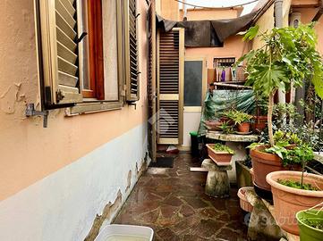 La zona giorno si sviluppa sulla destra ed è composta da una cucina abitabile, con accesso diretto al resede piastrellato di proprietà e da un accogliente soggiorno luminoso con affaccio sul resede.