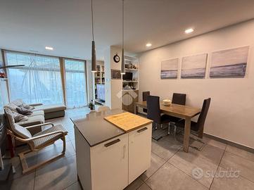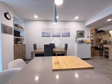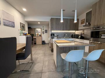 L'immobile si apre su una luminosa zona giorno in Open Space che unisce soggiorno e cucina in un unico ambiente conviviale con accesso diretto al giardino esterno.