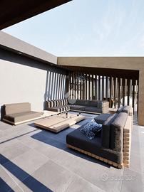 Tutti gli appartamenti sono dotati di ampi spazi esterni vivibili, con terrazze o giardini privati che regalano una suggestiva vista sui vigneti della Franciacorta, per vivere ogni giorno un'esperienza di tranquillità e bellezza.